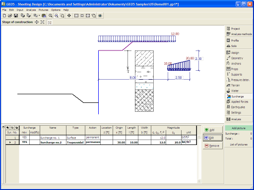 Analysis of earth pressures due to surcharge is described in the theoretical part of the help, chapter "Influence of surcharge".
